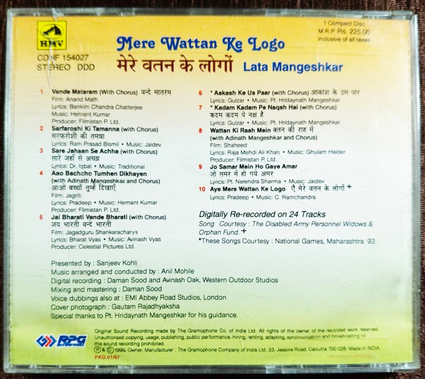 | 1. Vande Mataram | : | Lata Mangeshkar, Chorus |