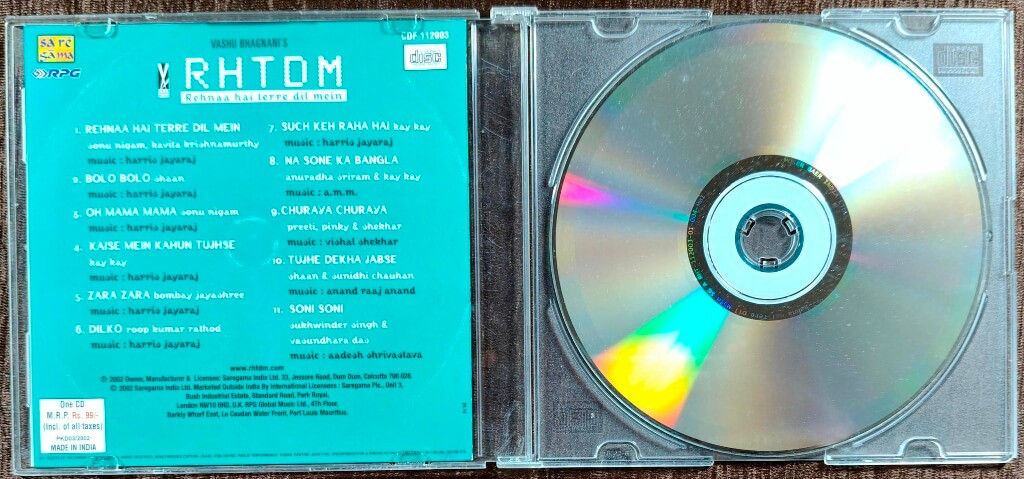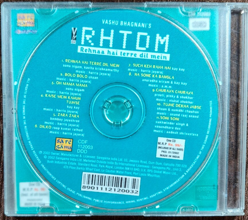 | 1. Rehnaa Hai Terre Dil Mein | : | Sonu Nigam, Kavita Krishnamurthy |