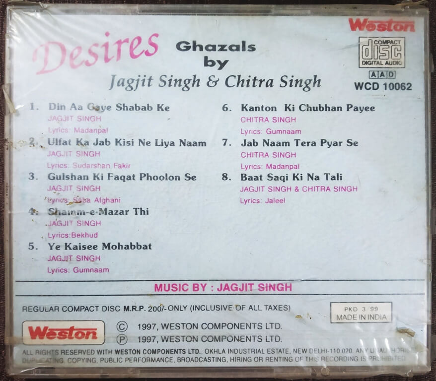 | Title | : | Jagjit Singh & Chitra Singh - Desires |