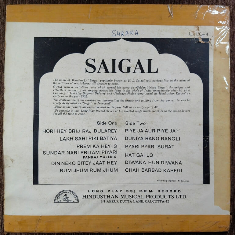 | A2. Lakh Sahi Piki Batiya | : | K. L. Saigal |