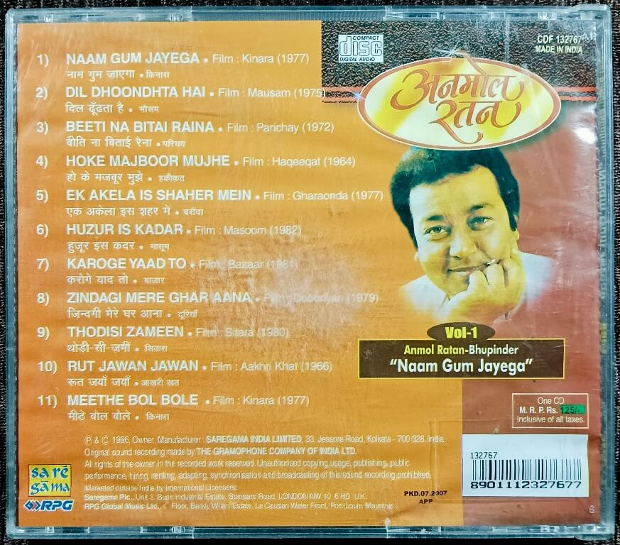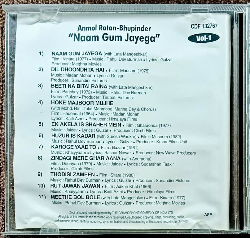 | Title | : | Bhupinder Singh - Anmol Ratan – “Naam Gum Jayega” - Vol-1 |