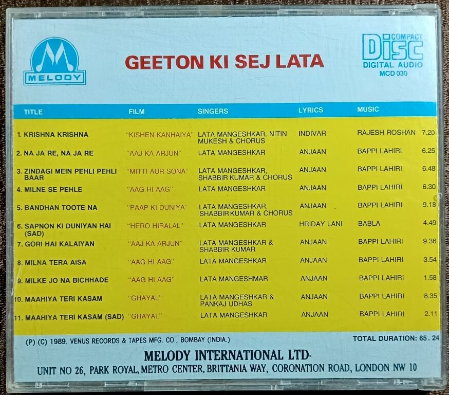 | 11. Maahiya Teri Kasam (Sad) | Lata Mangeshkar | Kishore Kumar & Lata Mangeshkar | |