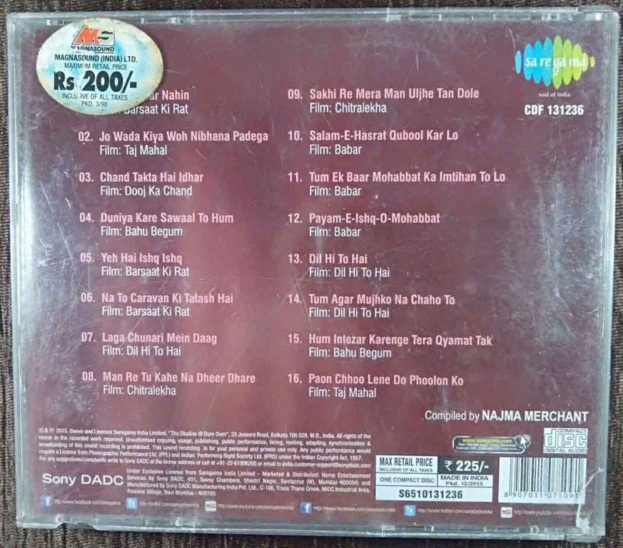 | 6. Na To Caravan Ki Talash Hai (Barsaat Ki Rat) | : | Manna Dey, Asha Bhosle, Mohd. Rafi, Sudha Malhotra, S.D. Batish & Chorus |