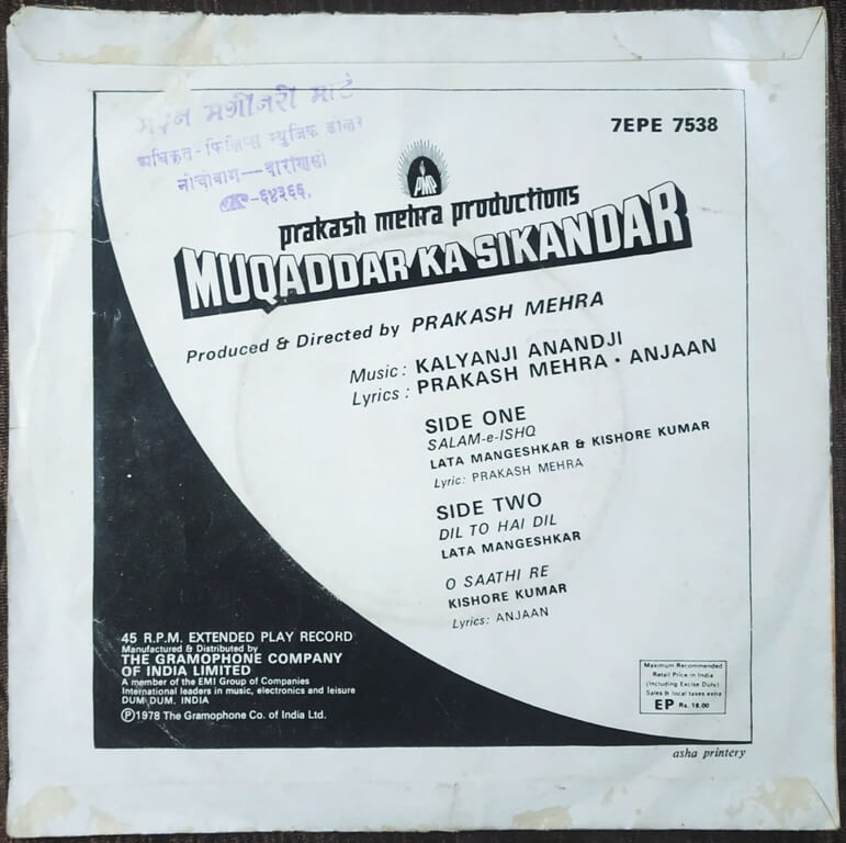 | Lyrics | : | Prakash Mehra & Anjaan |