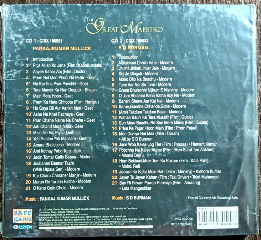| Title | : | Pankaj Kumar Mullick & Sachin Dav Burman - A Tribute to The great maestro |