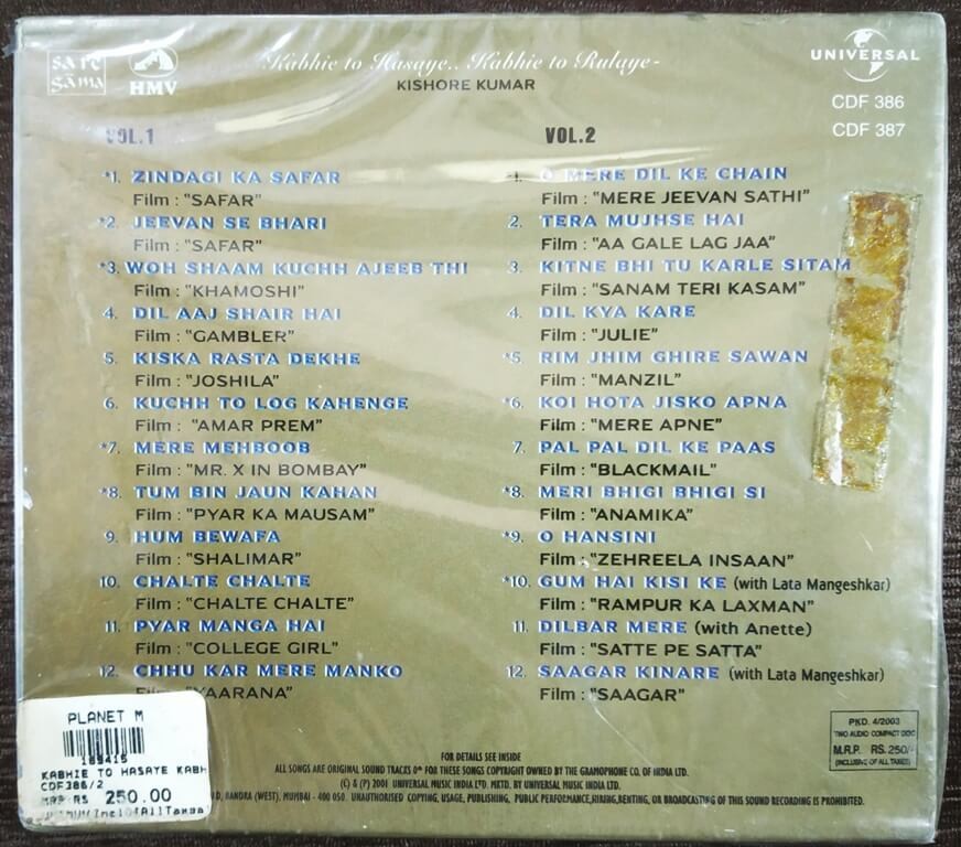 | Title | : | Kishore Kumar – Kabhie To Hasaye Kabhi To Rulaye – A Life Time Collection |