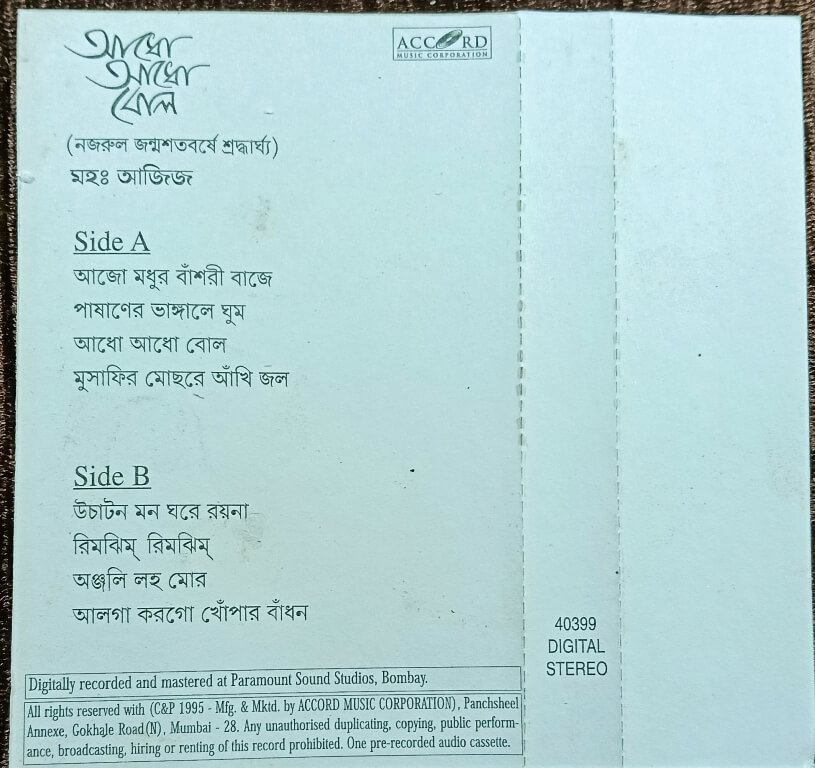 | Title | : | Mohamed Aziz - Adho Adho Bol -(A Tribute to Nazrul on his Birth Centenary) |