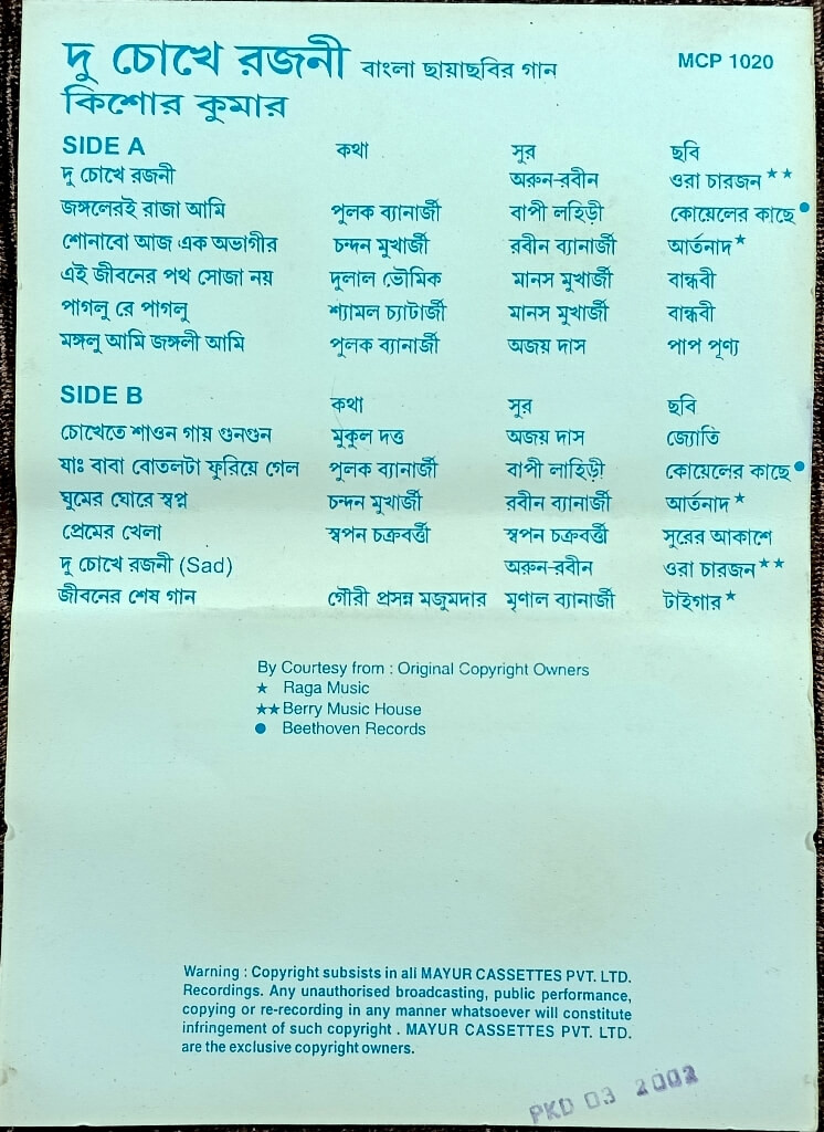| Title | : | Kishore Kumar - Du Chokhe Rajani |