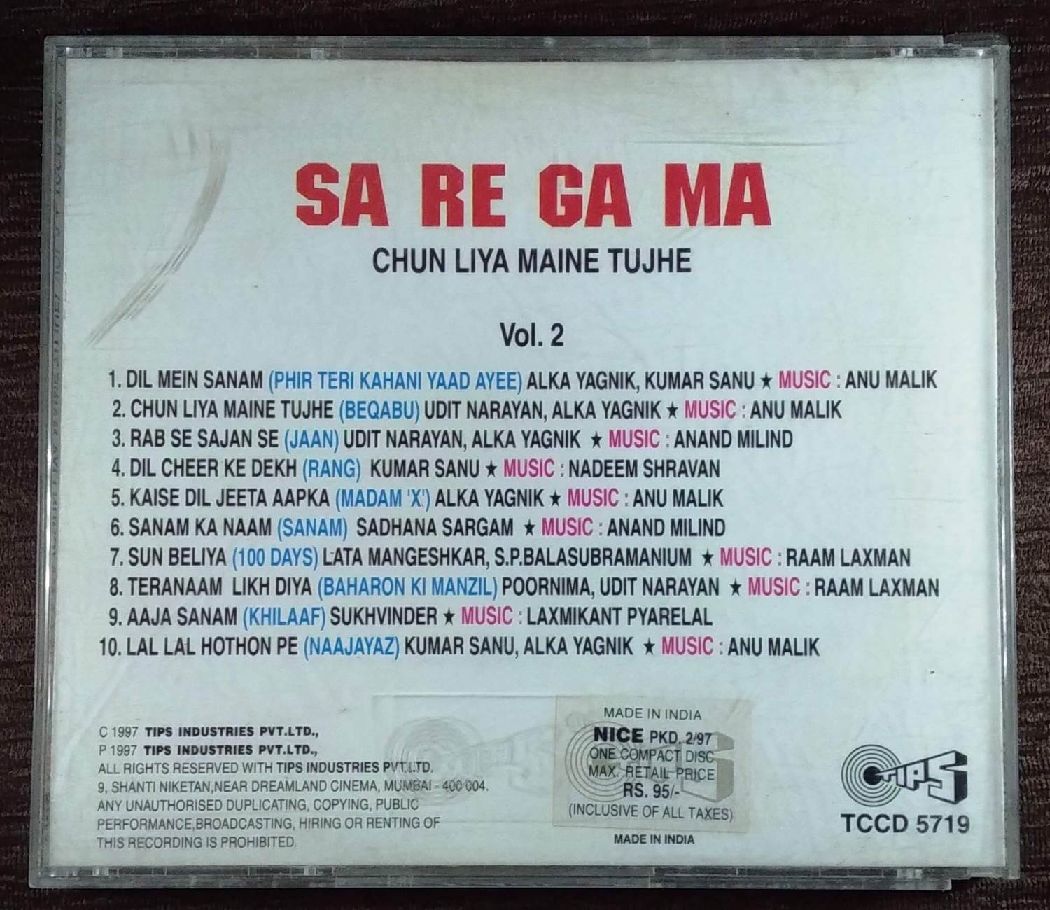 | Title | : | Sa Re Ga Ma - Chun Liya Maine Tujhe - Vol 2 |