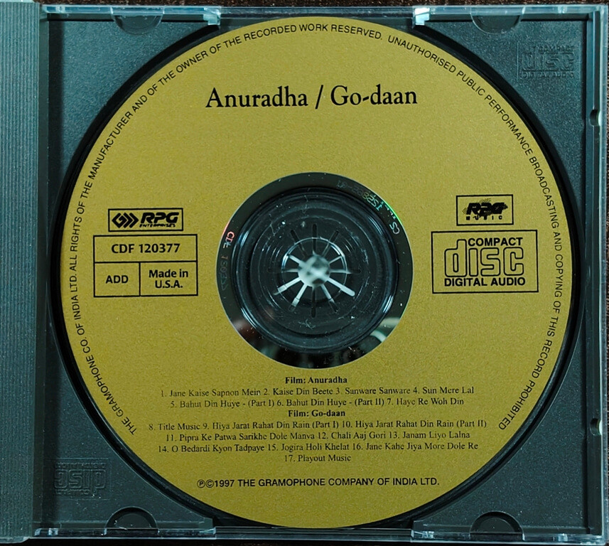 Anuradha (1960) Pt. Ravi Shankar / Go-Daan (1963) Pt Ravi Shankar Pre-Owned RPG Music Imported Audio CD