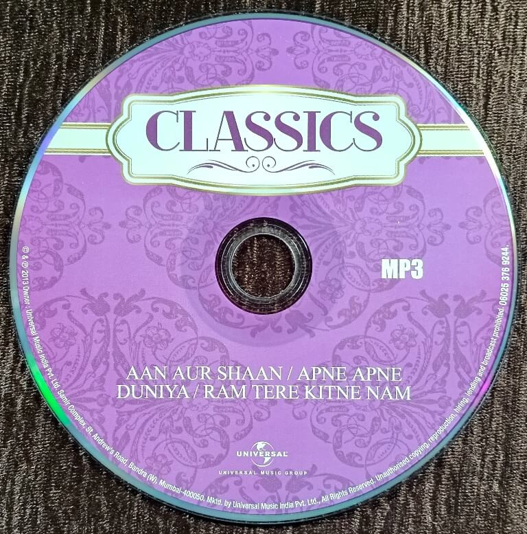 | Album Summary | A rare Universal Music MP3 compilation featuring four complete R. D. Burman soundtracks, all remastered in MP3 quality on a single disc. Includes iconic tracks from Aan Aur Shaan, Apne Apne, Duniya, and Ram Tere Kitne Nam. | |
