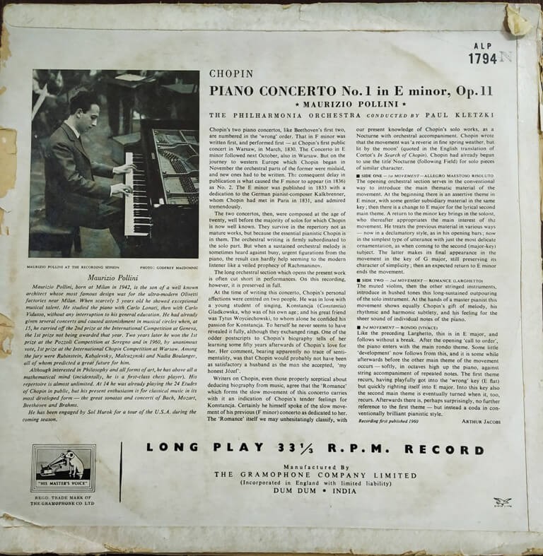 | Title | : | Chopin - Maurizio Pollini, Paul Kletzki, Philharmonia Orchestra – Piano Concerto N°1 |