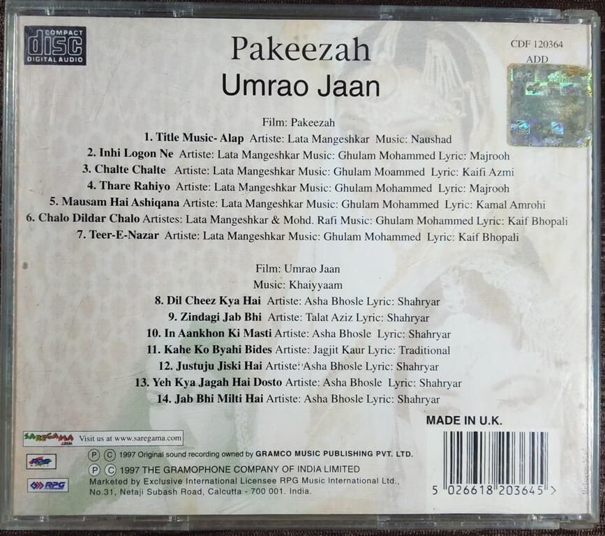 | Title | : | Pakeezah / Umrao Jaan |