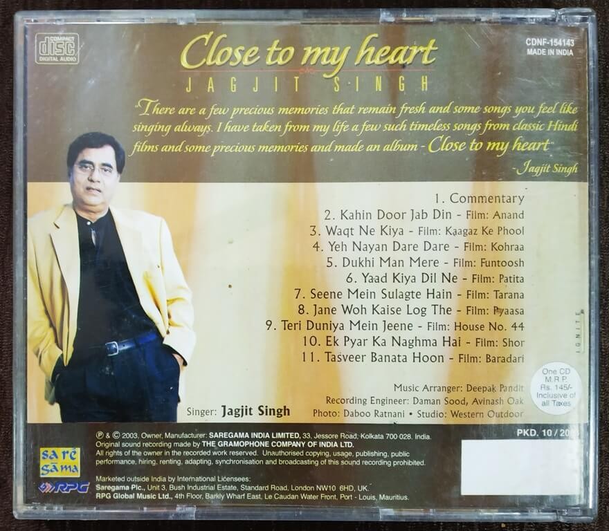 | Title | : | Jagjit Singh - Close To My Heart |