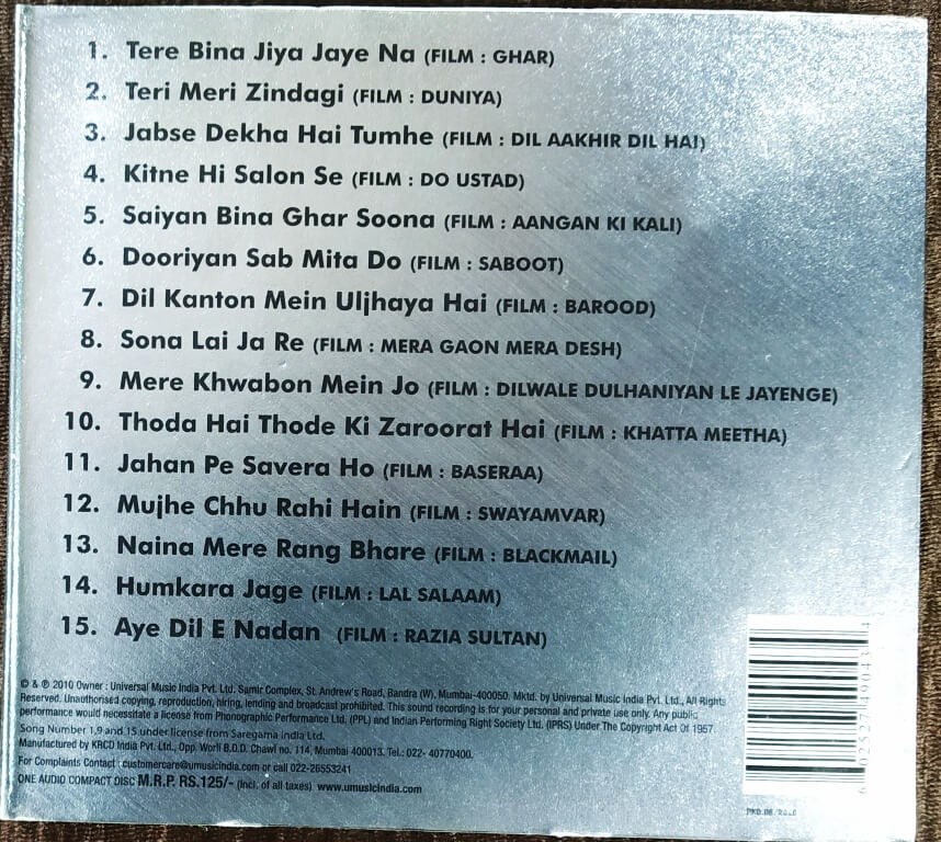 | 14. Aur Is Dil Mein (Imaandar) | : | Asha Bhosle |