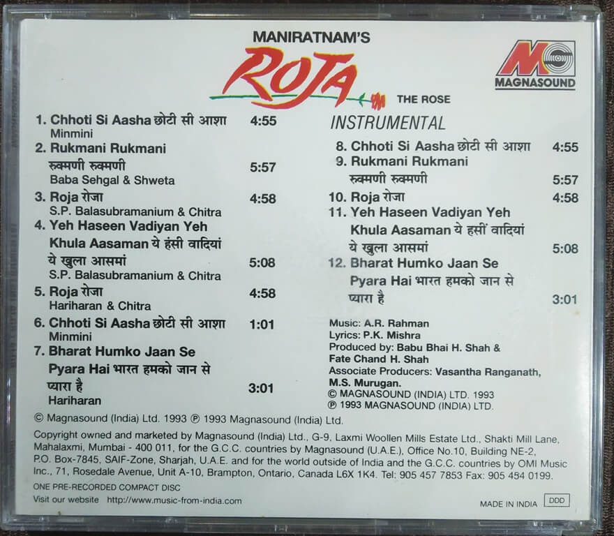| 10. Roja | : | A.R. Rahman |