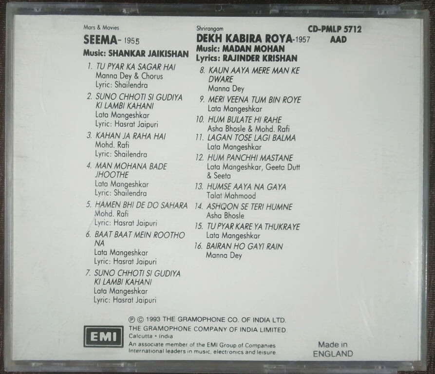 | Music Direction Of Seema | : | Shankar-Jaikishan |