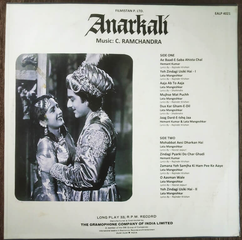 Anarkali (1974) C. Ramchandra Pre-Owned Vinyl, 12" LP Record