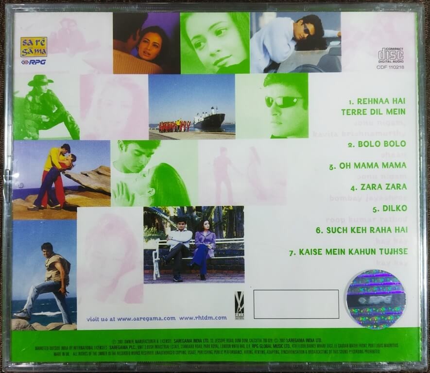 | 1. Rehnaa Hai Terre Dil Mein | : | Sonu Nigam, Kavita Krishnamurthy |
