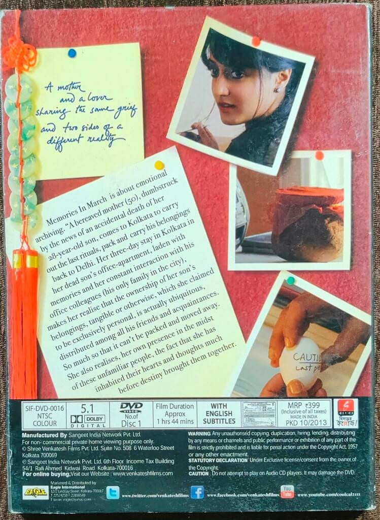 | The Movie | : | Memories in March is a deeply moving, introspective film that explores grief, identity, and emotional inheritance. The narrative unfolds over three days in Kolkata, where a bereaved mother comes to terms with her son’s death and discovers unexpected emotional bonds through the people who shared his life. |