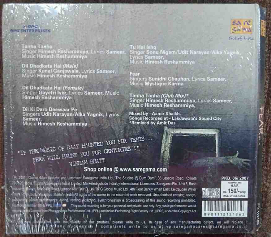| 6. Fear | : | Sunidhi Chauhan |