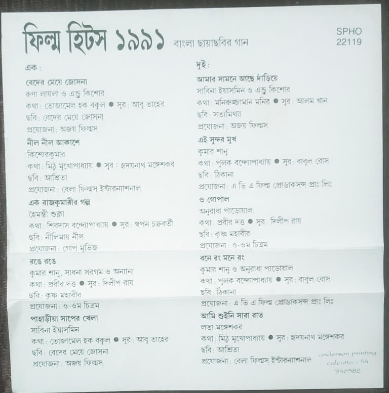 | Title | : | Bengali Film Hits 1991 |