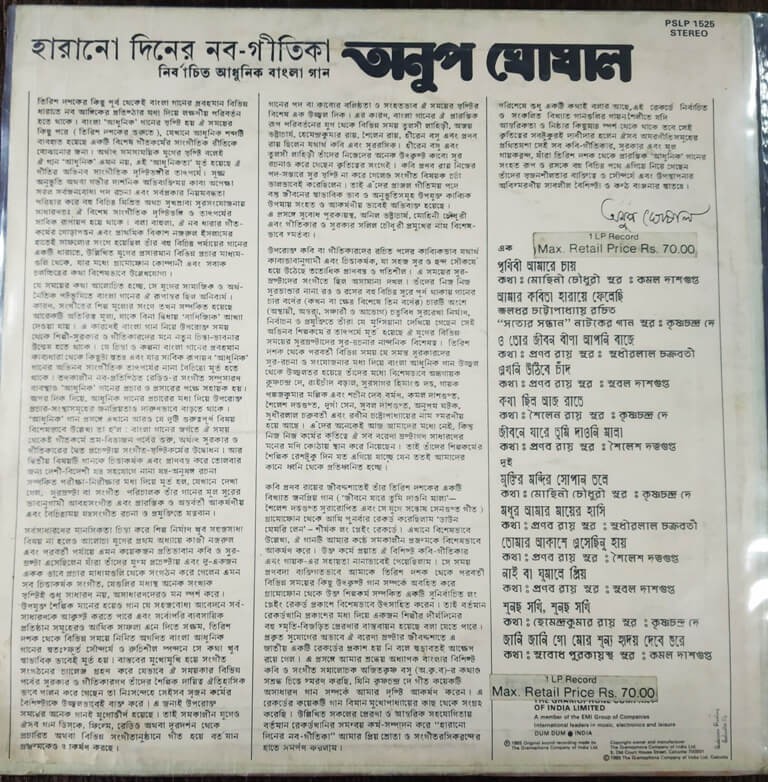 | Title | : | Anup Ghoshal - Harano Diner Nabo Geetika (Selected Modern Bengali Songs) |