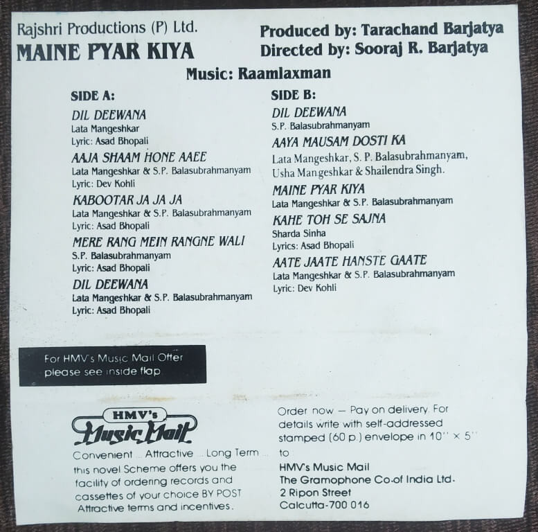 | 3. Maine Pyar Kiya | : | Lata Mangeshkar & S.P. Balasubrahmanyam |