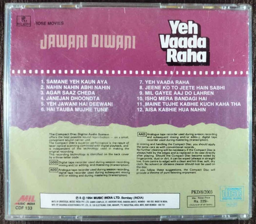 | Title | : | Jawani Diwani / Yeh Vaada Raha |