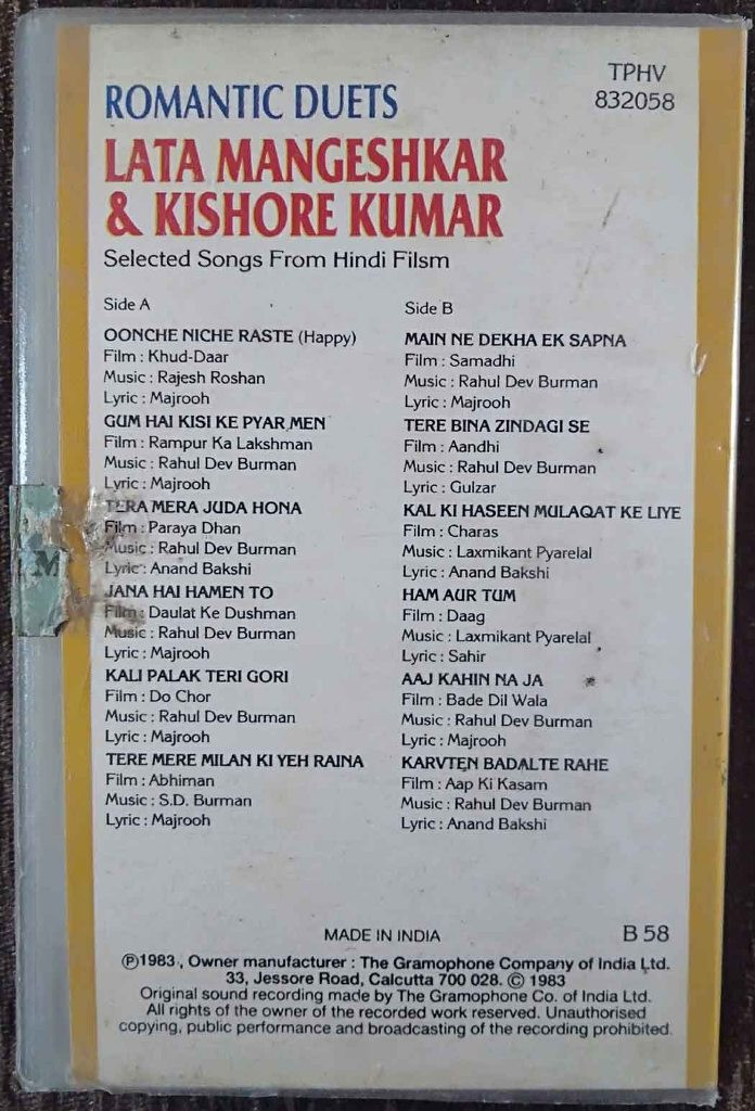 | Title | : | Lata Mangeshkar & Kishore Kumar - Romantic Duets - Selected Songs From Hindi Films |