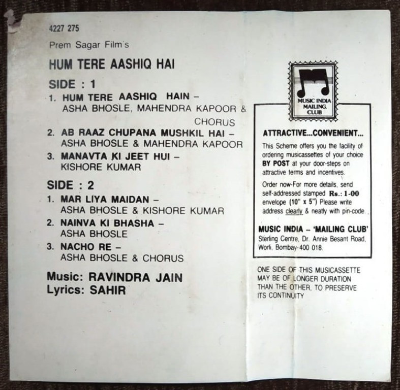 Hum Tere Aashiq Hain (1979) Ravindra Jain Pre-Owned Music India Audio Cassette