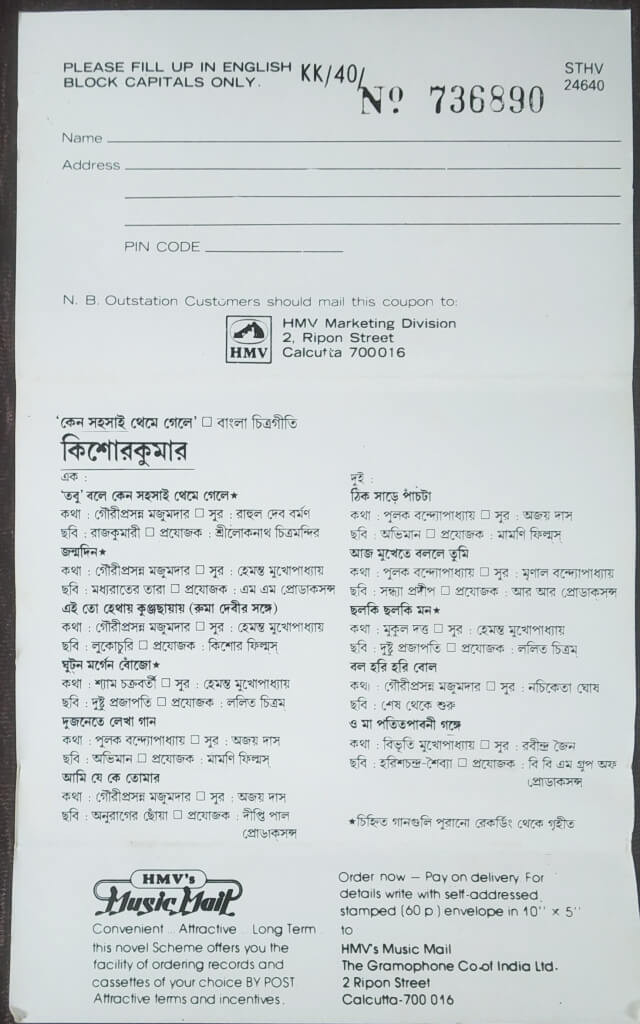 | A1. তবু' বলে কেন সহসাই থেমে গেলে | : | Kishore Kumar |