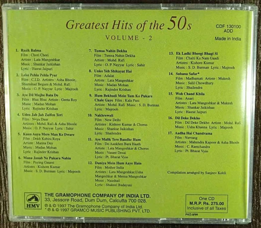 | Title | : | Greatest Hits Of 50s - Vol 2 |