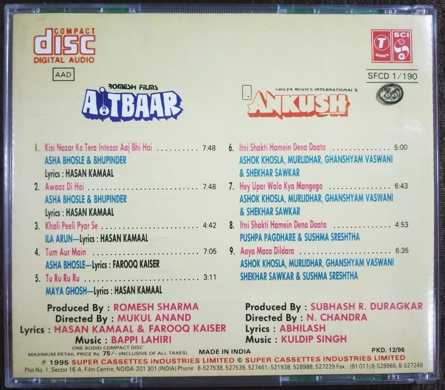 | Music Direction Of Aitbaar | : | Bappi Lahiri |