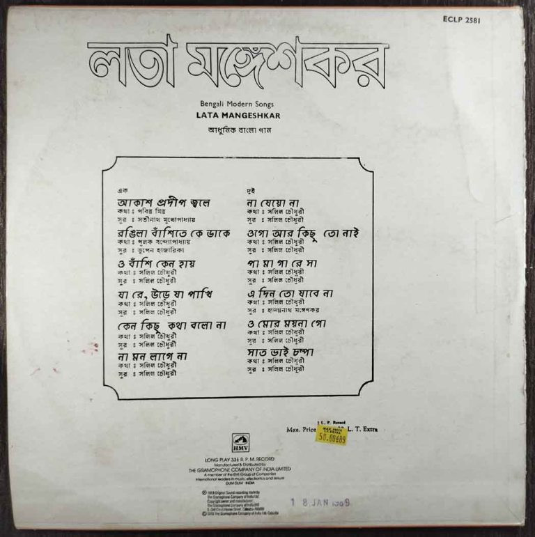 | Title | : | Lata Mangeshkar – Bengali Modern Songs |