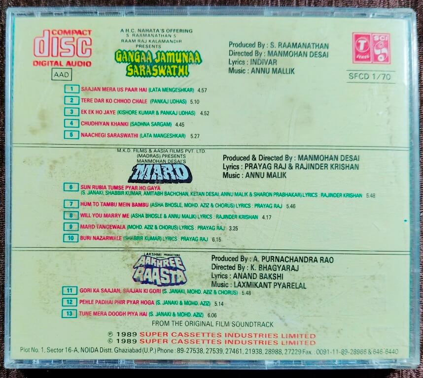 | Title | : | Songs From Amitabh Bachchan Starrer : Gangaa Jamunaa Saraswathi / Mard / Aakhree Raasta |