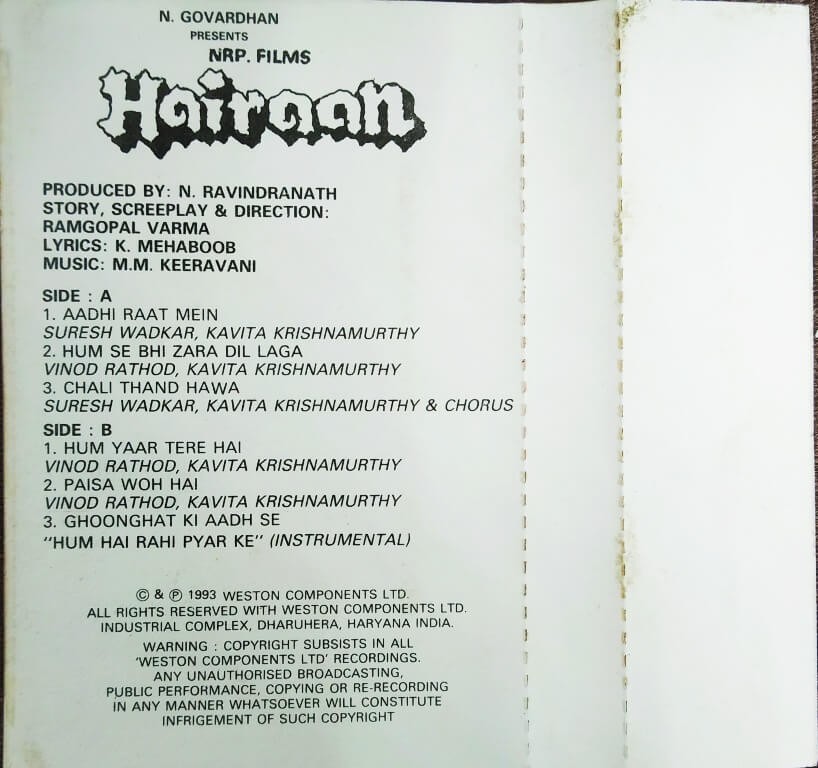 | 1. Aadhi Raat Mein | : | Suresh Wadkar, Kavita Krishnamurthy |