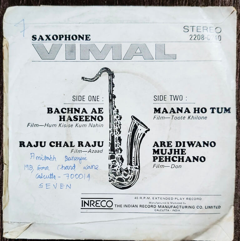 | Title | : | Vimal - Saxophone Hindi Film Tunes |