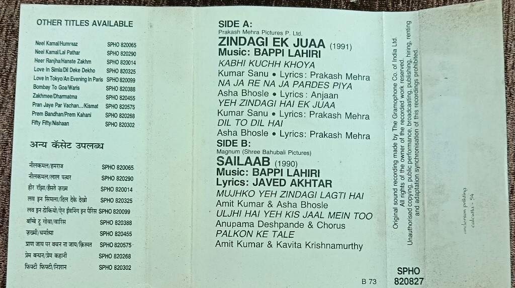 | Music Direction Of Zindagi Ek Juaa | : | Bappi Lahiri |