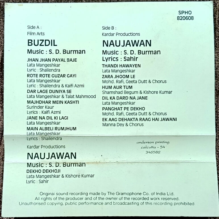 | Music Direction of Buzdil | : | S. D. Burman |