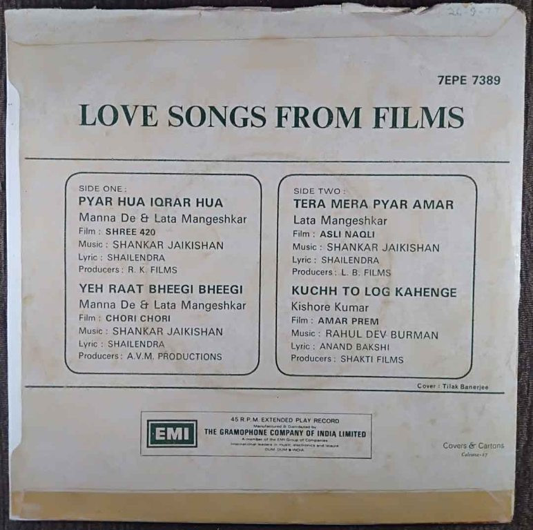| 1. Pyar Hua Iqrar Hua (Shree 420) | : | Manna Dey & Lata Mangeshkar |