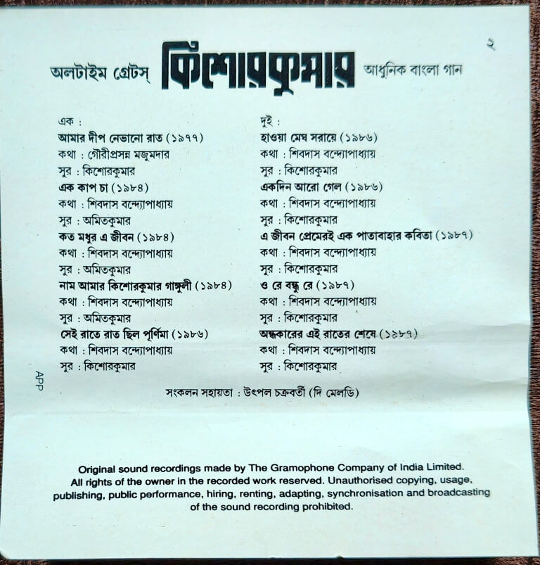 | A4. Naam Amar Kishore Kumar Ganguly (1984) | : | Lyrics: Shibdas