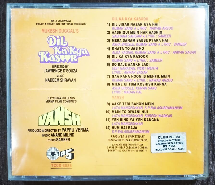 | Music Direction Of Dil Ka Kya Kasoor | : | Nadeem-Shravan |