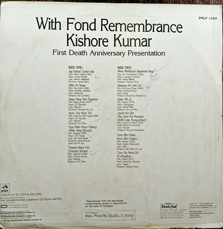 | Title | : | Kishore Kumar - With Fond Remembrance Kishore Kumar: First Death Anniversary Presentation |