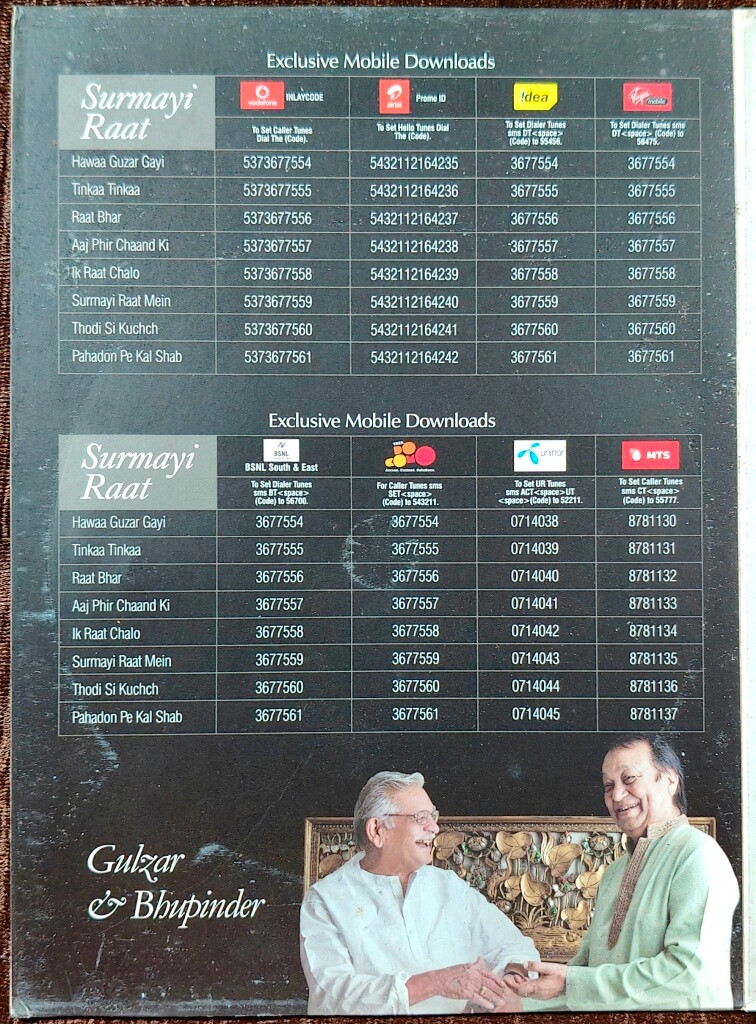 | Title | : | Gulzar & Bhupinder – Surmayi Raat |