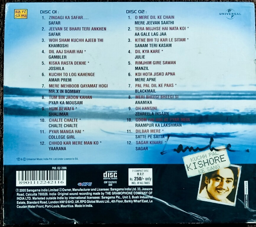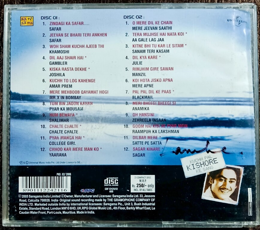 | 12. Sagar Kinare (Sagar) | : | Kishore Kumar |
