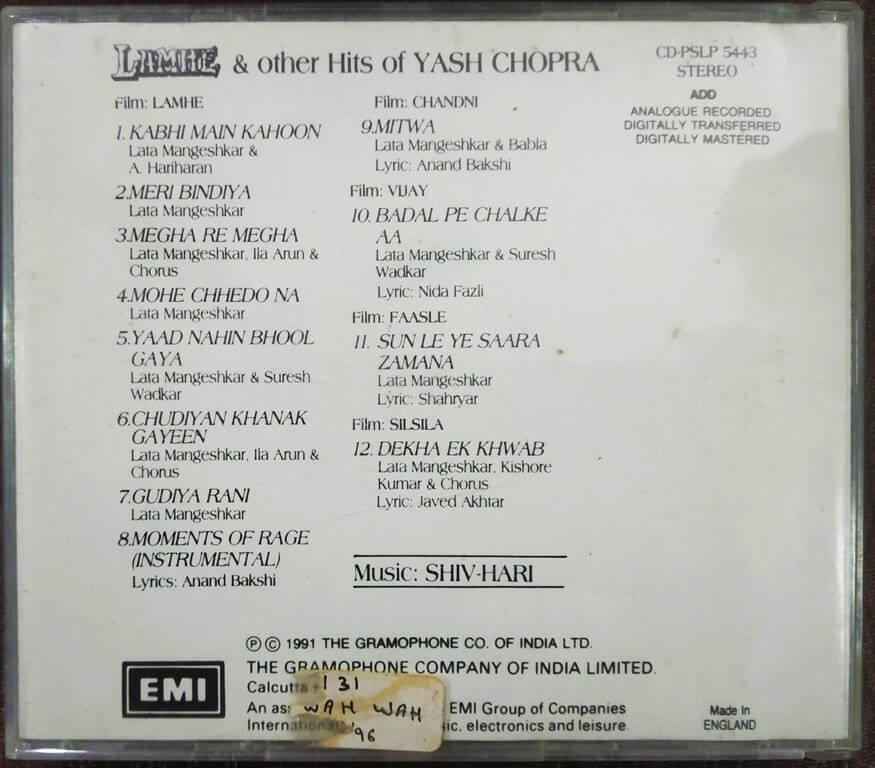 | Title | : | Lamhe & Other Hits Of Yash Chopra |