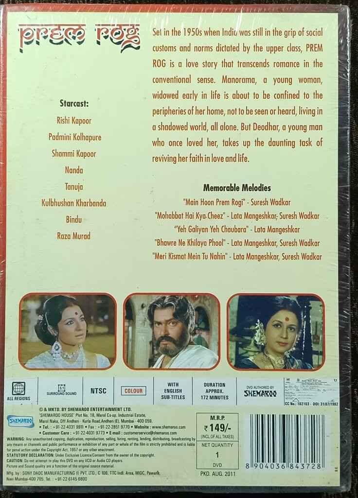 | Plot Summary | : | Set in the 1950s, Prem Rog explores a sensitive social issue of widowhood in Indian society. Manorama, a young woman widowed early, faces social confinement and isolation. Deodhar, a man from her past, dares to challenge regressive customs and revives her belief in love, hope, and life. |