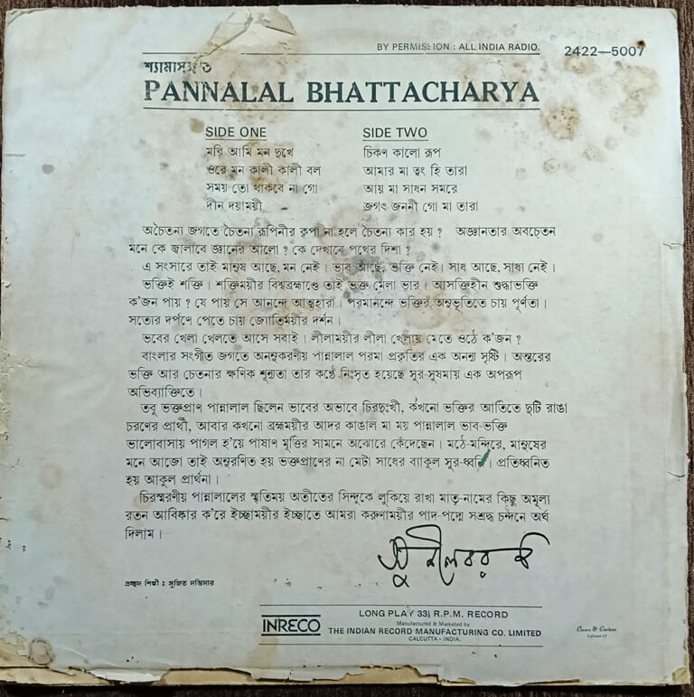 | Title | : | Pannalal Bhattacharya – Shyama Sangeet |