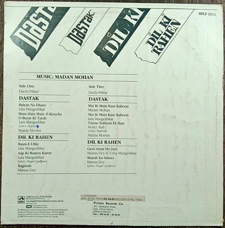 | Title | : | Dastak (1970) / Dil Ki Rahen (1973) : Bollywood LP Vinyl Record |